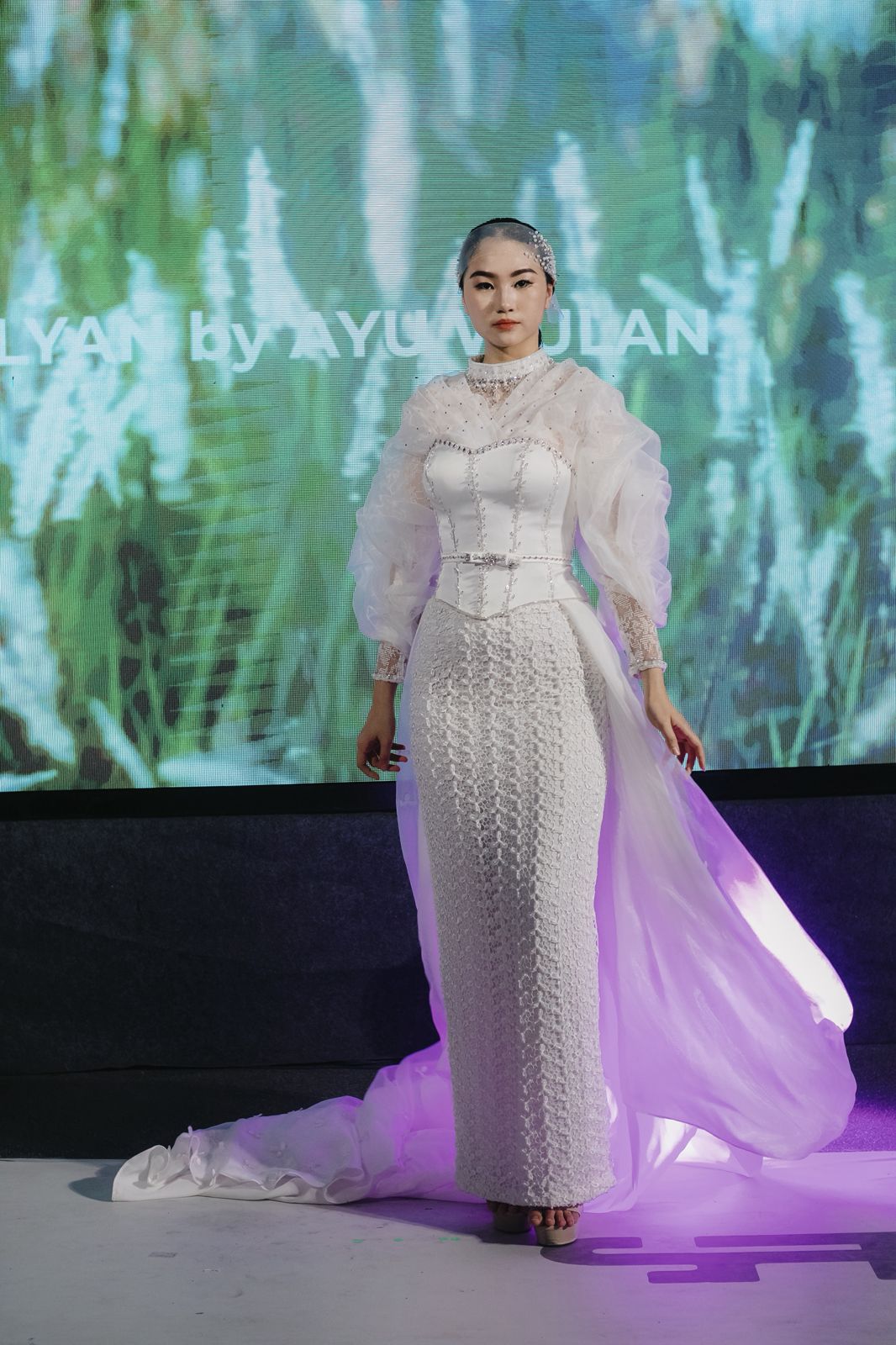 Dress Malaka Claudia hadir mempesona dengan balutan putih yang memancarkan kemurnian dan keanggunan. Seluruh permukaan dress dihiasi detail payet mutiara yang tersebar rapi yang memberikan kesan lembut yang tak lekang oleh waktu. Bagian lehernya diperkaya dengan taburan permata yang memantulkan cahaya mewah namun tidak berlebihan, keuinikan Dress Claudia terdapat pada drapping pada area dada menyatu anggun hingga ke lengan, menciptakan transisi volume yang halus dan mewah. Dress ini dilengkapi ekor lepas pasang yang memberi keleluasaan untuk berganti suasana antara momen sakral dan perayaan. Bustiernya pun tak luput dari sentuhan glamor, dihiasi payet dan kristal yang mempertegas siluet indah sang pemakai. Sebuah pilihan sempurna bagi pengantin yang ingin tampil elegan dengan kemewahan yang berkelas. Dress Claudia dapat dipadukan dengan jas laki-laki yang memiliki potongan rapi dan warna netral seperti putih, krem, atau abu muda, sehingga menciptakan tampilan couple yang harmonis dan serasi. Kombinasi ini akan menonjolkan kesan anggun, modern, dan berkelas dalam setiap kesempatan