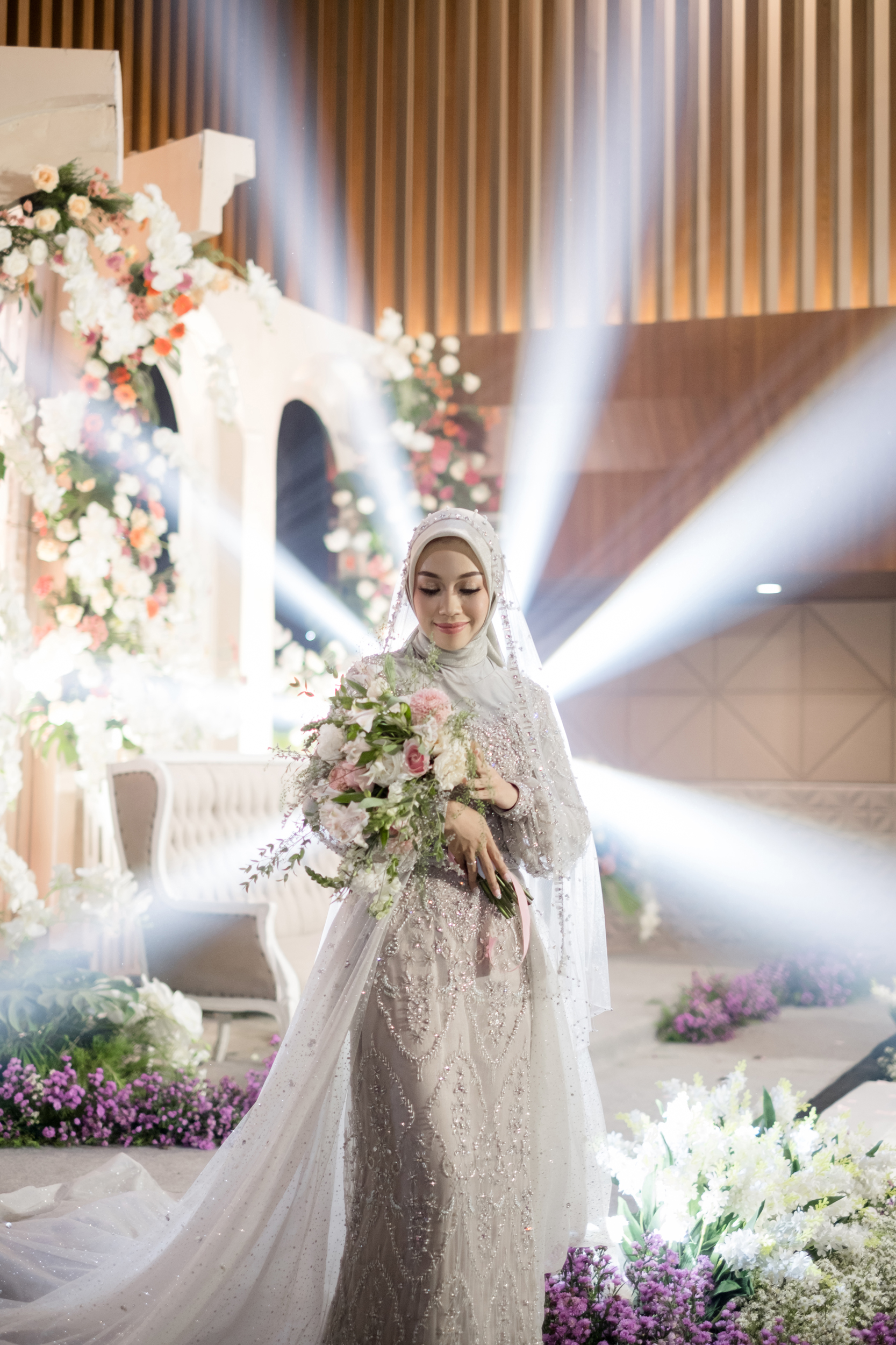 Dress Sage Soft tampil anggun dalam balutan warna sage yang menenangkan, diperkaya dengan detail payet bernuansa sage dan silver yang berkilau lembut, menciptakan harmoni sempurna antara kelembutan dan kemewahan. Ekor tille yang melingkari pinggang, ditata dengan detail sabuk elegan, menjadi highlight yang mempertegas siluet mewah dan glamor tanpa kehilangan sentuhan feminin. Setiap elemen dirancang untuk memberikan kesan anggun dan menawan dalam satu pandangan. Dress ini fleksibel untuk dipadukan dengan jas, basofi, maupun Asraf, menciptakan tampilan pengantin yang selaras dan istimewa.