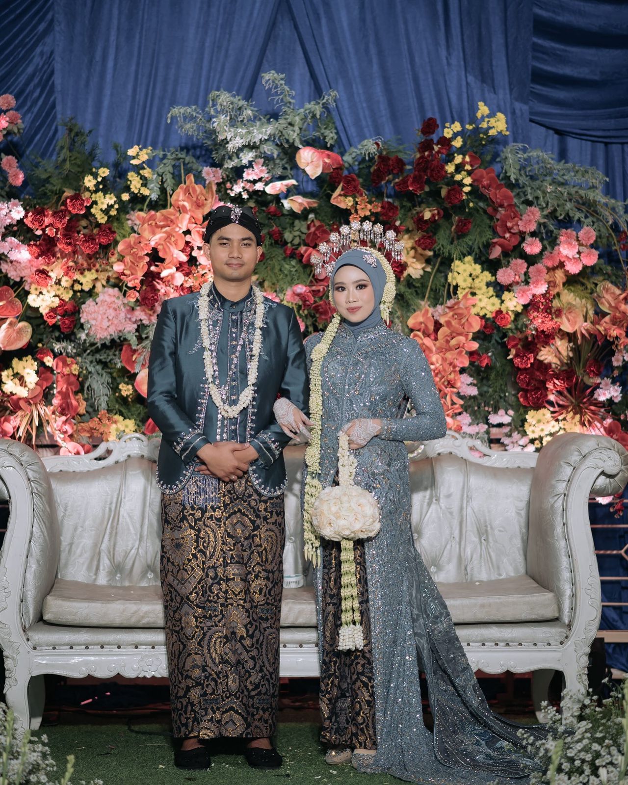Kebaya Denim Ayudia merupakan perpaduan indah antara nuansa modern dan sentuhan tradisional yang menawan. Mengusung warna denim yang unik dengan kilau payet gold di setiap detailnya, kebaya ini menghadirkan kesan anggun, berkelas, sekaligus berani tampil berbeda. Keistimewaannya terletak pada ekor chongsam lepas-pasang dengan motif Rama dan Sinta, simbol cinta sejati dan kesetiaan abadi yang memberi makna mendalam pada setiap langkah pemakainya. Motif ini bukan sekadar ornamen, melainkan representasi keanggunan yang berpadu dengan nilai budaya dan kisah cinta klasik Indonesia. Kebaya denim ini juga sangat fleksibel untuk dipadupadankan dengan basofi, beskap, jas, maupun asraf, menjadikannya pilihan sempurna bagi pasangan yang ingin tampil serasi dan berkarakter di momen istimewa. Setiap potongannya dirancang dengan detail presisi dan menggunakan bahan pilihan terbaik, menghadirkan kenyamanan tanpa mengurangi kemewahan tampilannya.