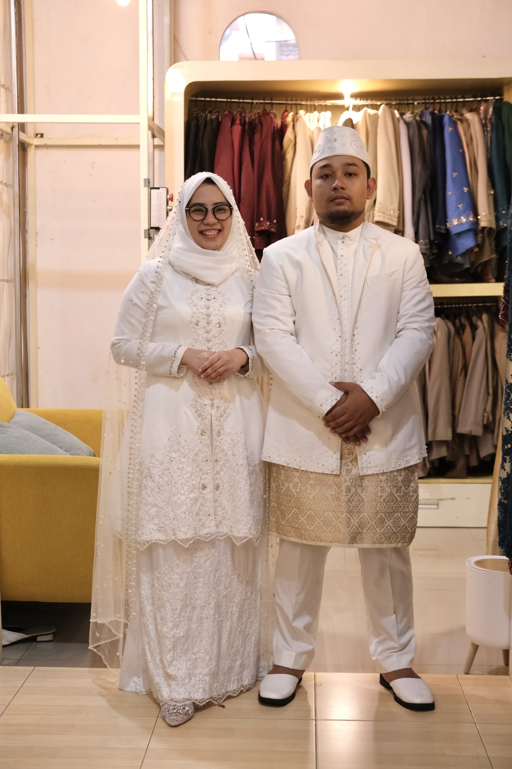 Dipadupadankan dengan basofi yang menjuntai anggun, keseluruhan tampilan terlihat semakin berkelas dan penuh makna. Basofi menjadi aksen pelengkap yang memperkuat nuansa tradisional sekaligus memberi sentuhan kemewahan yang halus. Perpaduan bahan yang jatuh, nyaman, dan detail yang tertata rapi menjadikan busana ini pilihan tepat untuk pengantin yang menginginkan tampilan sopan, elegan, dan timeless, tanpa meninggalkan nilai budaya dan kesakralan pernikahan ✨